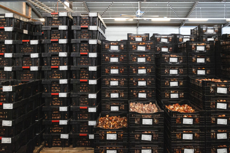 With all of our sophisticated and streamlined working methods, we manage to process impressive quantities of flower bulbs. The flower bulbs are divided into several orders, either for immediate shipment or for possible further processing. This means that we can process a relatively large number of order lines, ranging from crates to containers, in a short time at our facility.